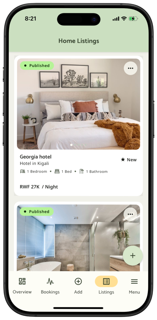Browse and book verified homes and apartments in Kigali. No middlemen, no surprises — just a great place to stay, booked directly through the app.